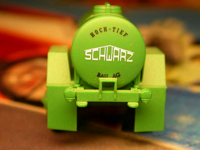 Das Schwarz-Bau-Emblem ist beim Wasseranhänger die einzige Variante, wo der Firmenname anstatt nebeneinander übereinander angeordnet ist.